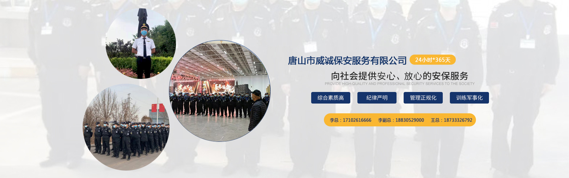 以專創(chuàng)業(yè),以信致遠。威誠保安服務(wù)有限公司將珍視各利益相關(guān)方的信賴,以堅實的工作績效協(xié)助客戶實現(xiàn)安心、有效、和諧的運營,以嚴(yán)格的管理為員工職業(yè)發(fā)展提供平臺支持,成為法治和諧社會的正能量,成就威誠品牌。